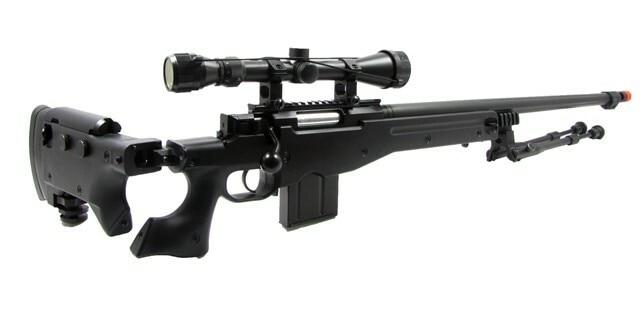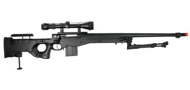 WELL L96 Airsoft Spring Sniper Rifle with Folding Stock, Scope, Bipod, and Monopod