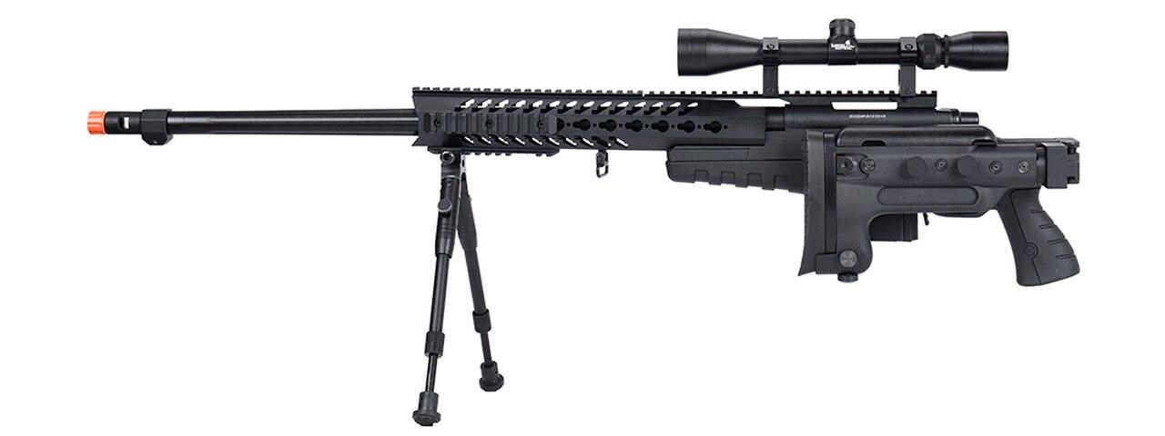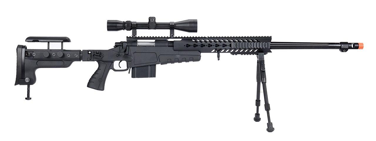 WellFire MB4418-3 Bolt Action Airsoft Sniper Rifle w/ Scope & Bipod, Black