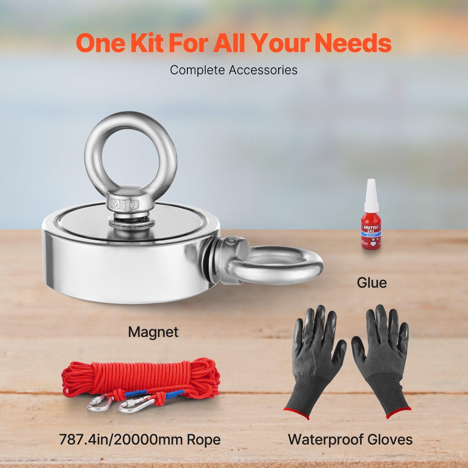 1000 LBS Strong Fishing Magnet Kit Double-Sided Pull Force and Rope Carabiner