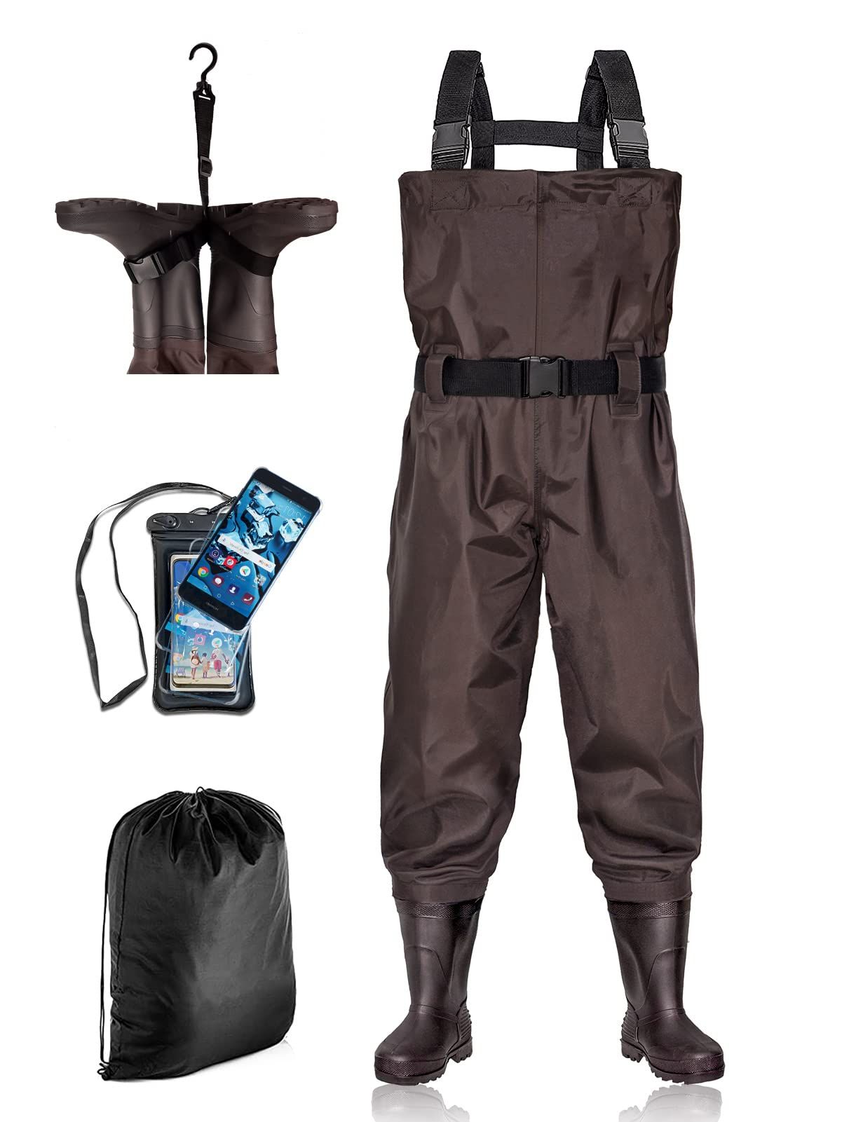1.Color&Size: BELLE DURA Fishing waders have brown color and green, Both colors are perfect for men, women, youth, kids, boys and girls.PVC Boots with a standard size , waders with boots size 5 , Size 6, Size 7, Size 8, Size 9, Size 10, Size 11, Size 12, Size 13, Please choose your usual shoe size.If you have wide feet or need to wear thick socks, choose a size larger than usual.