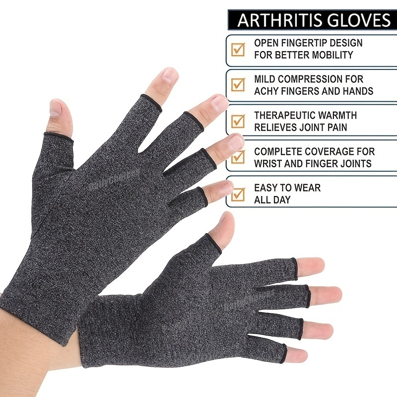 1pair Arthritis Fingerless Compression Gloves; Outdoor Half Finger Knuckle Pressure Gloves (Buy A Size Up)