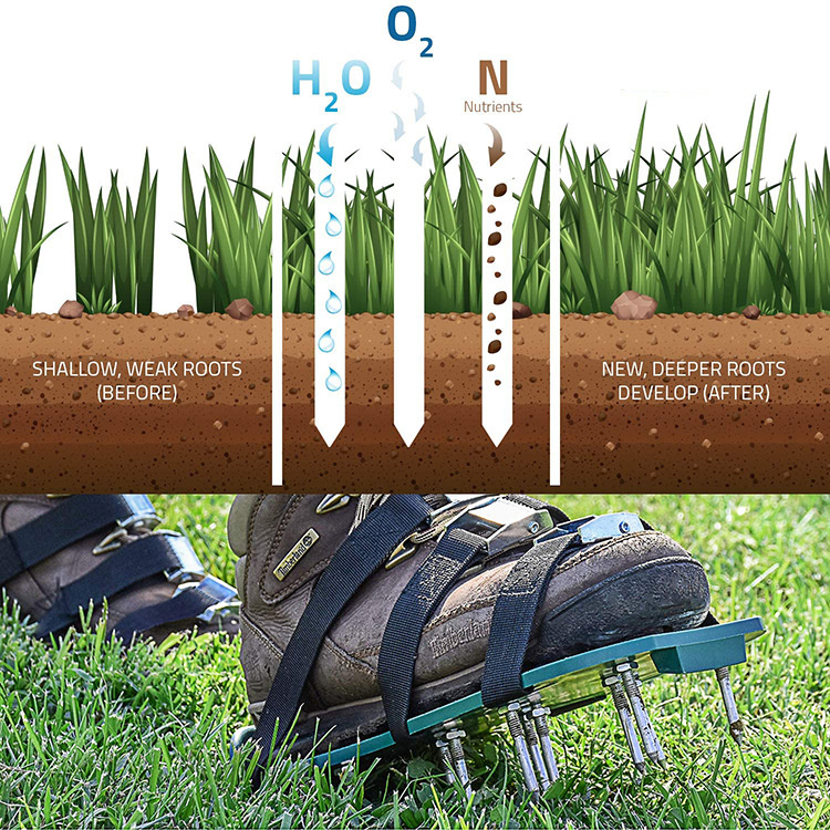 aerator shoes with hook and loop fasteners, you can take them on and off in a snap, super convenient and stable, getting an aerated, healthy lawn has never been easier!